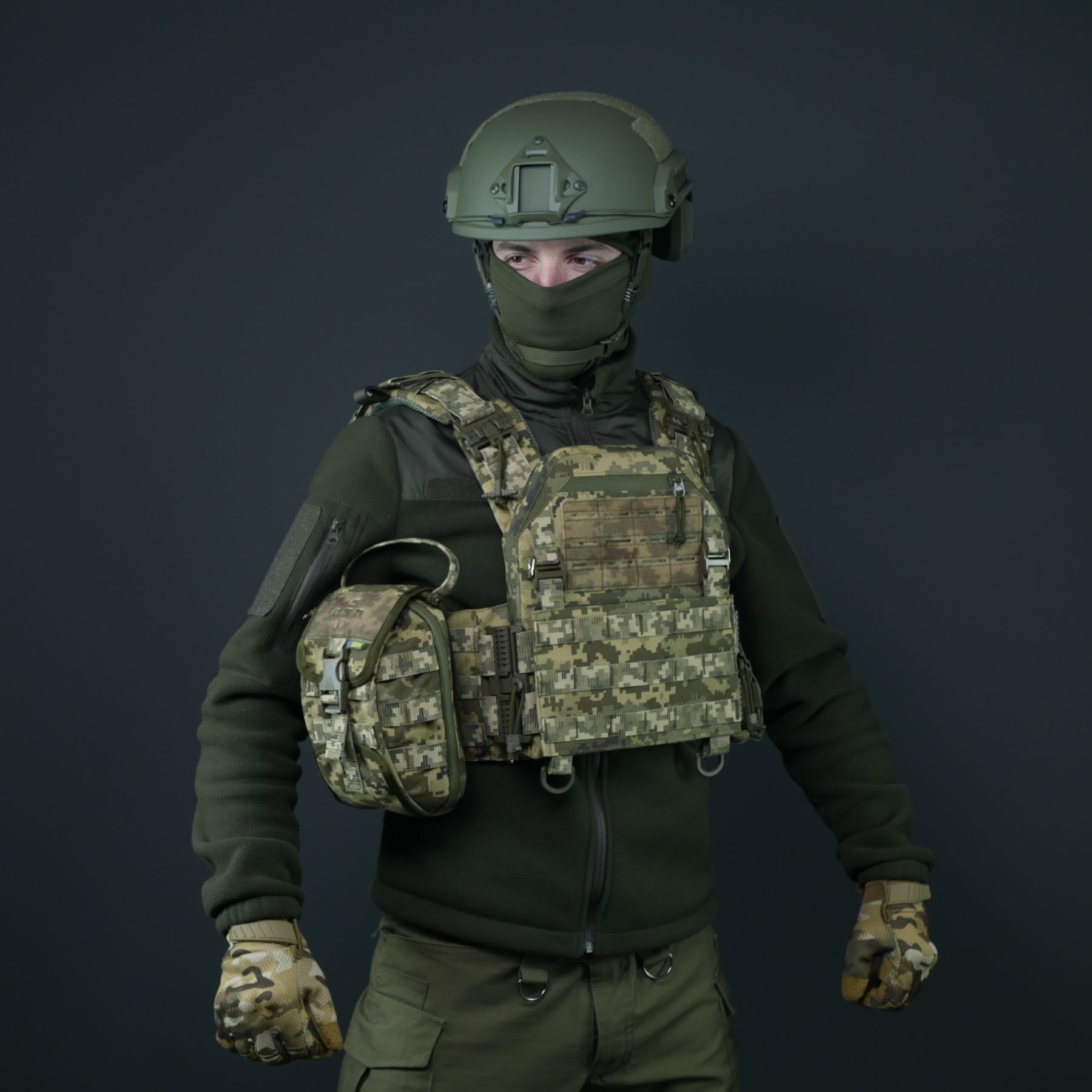 Основна тканина Cordura 1000D 380г/м² з NIR-просоченням, що робить виріб менш помітним у приладах нічного бачення. Має подвійне поліуретанове покриття для захисту від вологи та мастильних матеріалів, не підтримує горіння, не стирається, не вигорає на сонці, зберігає свої властивості тривалий час в екстремальних умовах експлуатації.