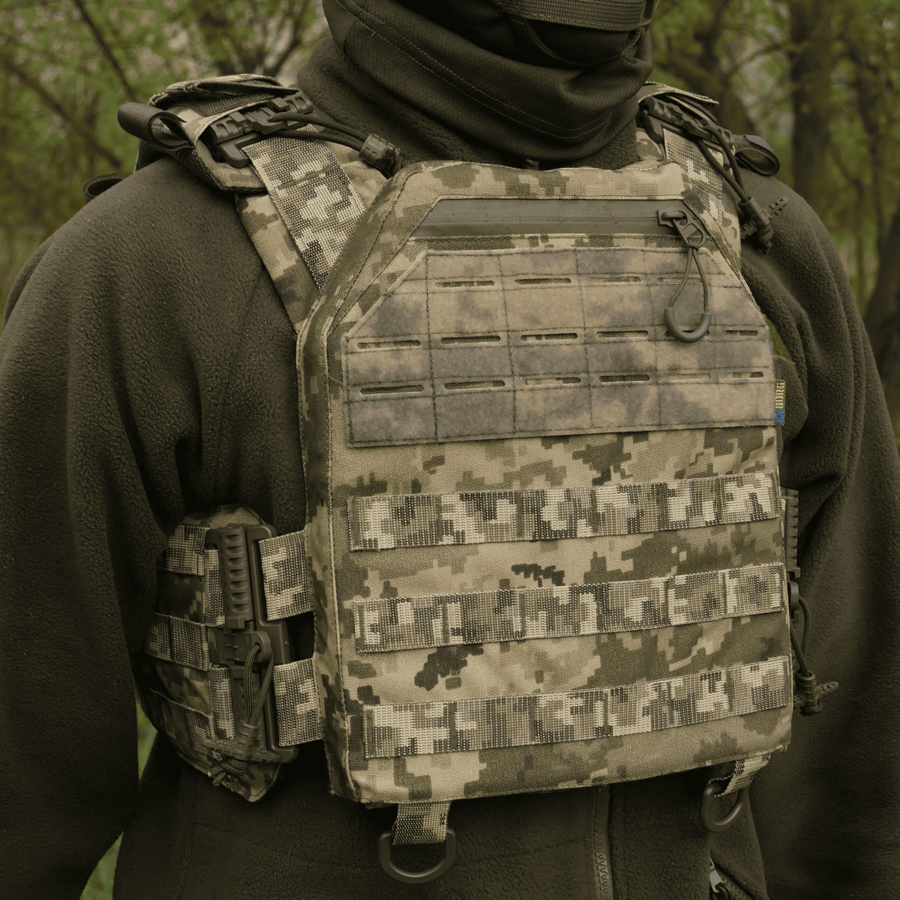 Посилена велкро панель: розташована у верхній частині над клапаном, має систему Laser Cut Molle для кріплення спорядження та ідентифікаційних патчів.