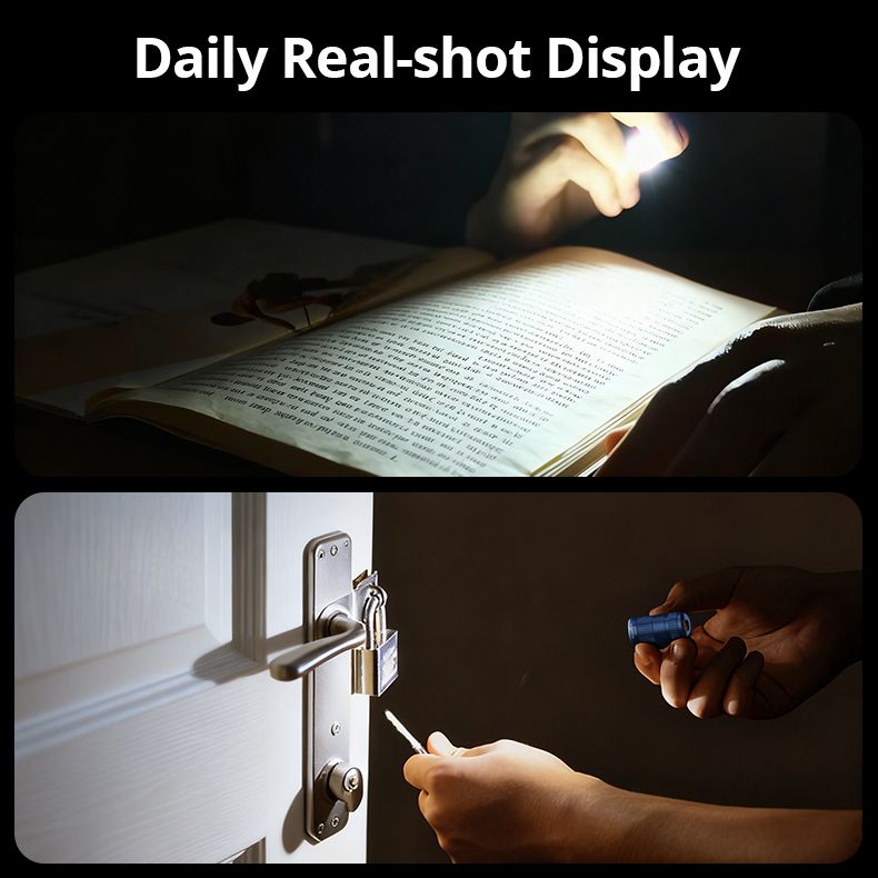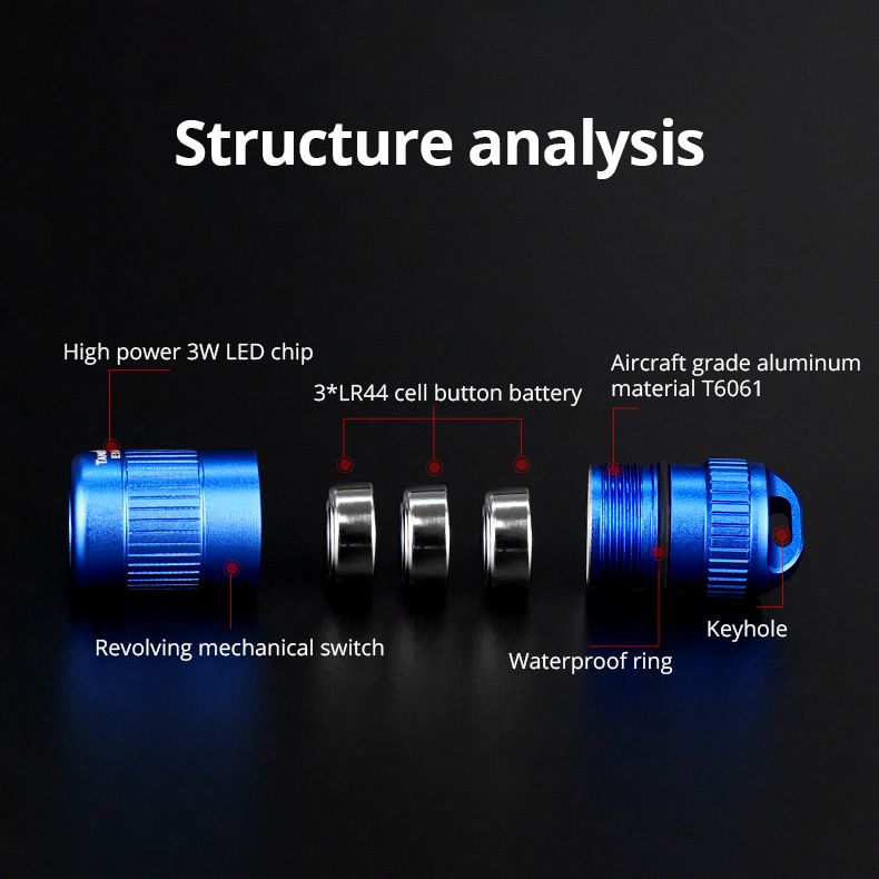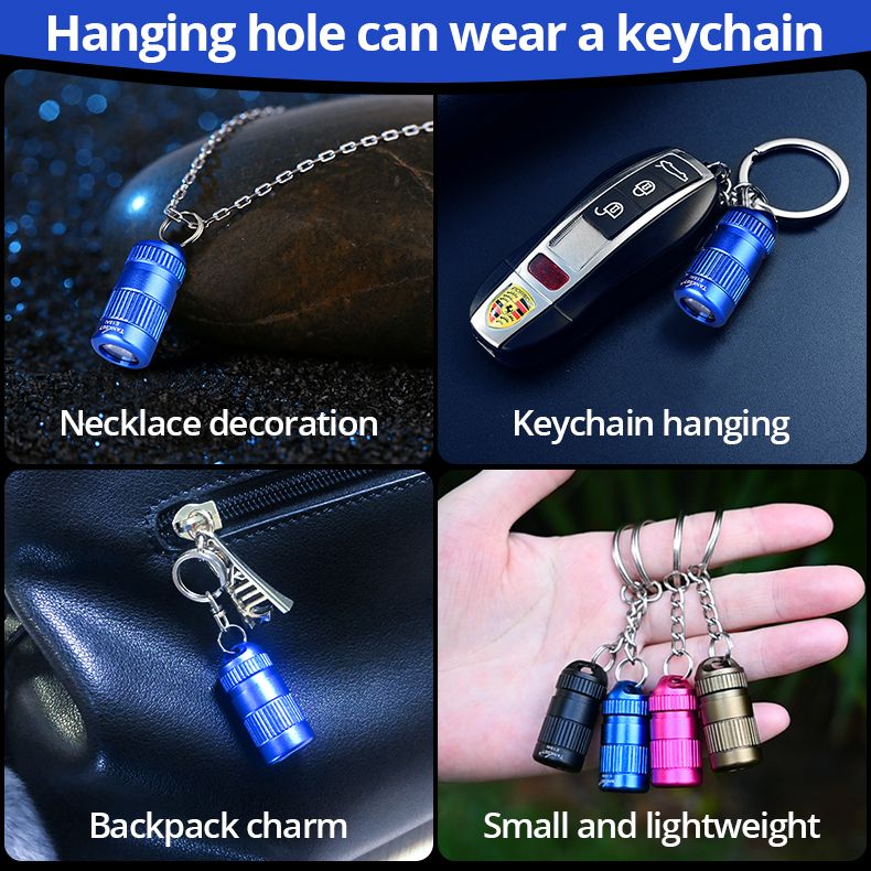 E15 - це надзвичайно портативний міні-ліхтар на ключі. Компактний та вишуканий, розміром з монету, він доступний у п'яти кольорах: чорний, рожевий, латунний, синій та сірий. Його можна використовувати як подарунок, як стильну прикрасу для ключів або як портативне джерело аварійного освітлення.