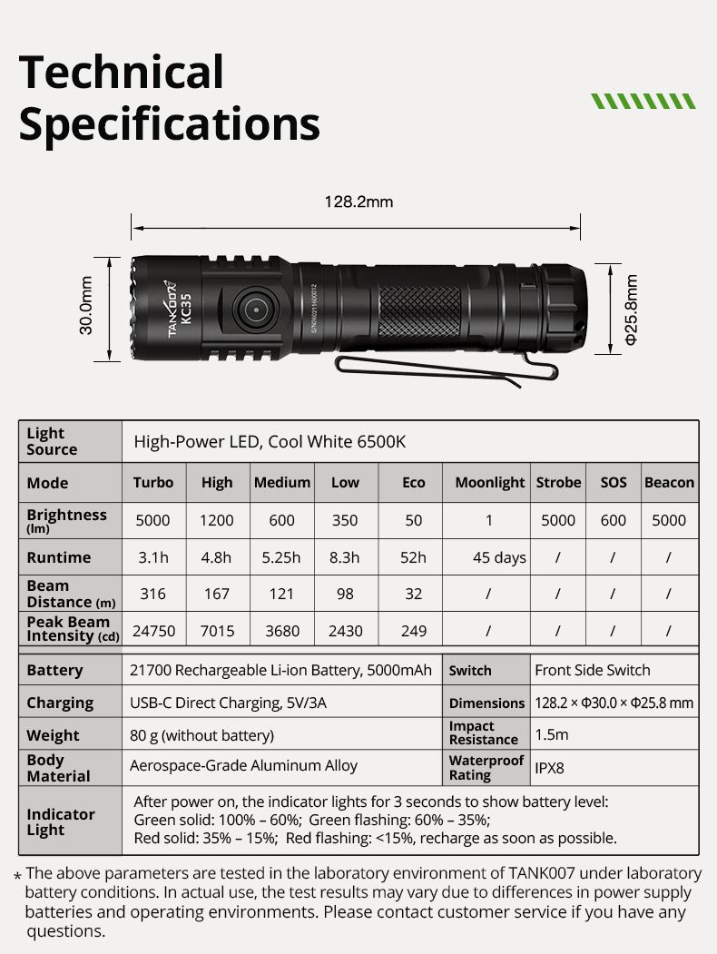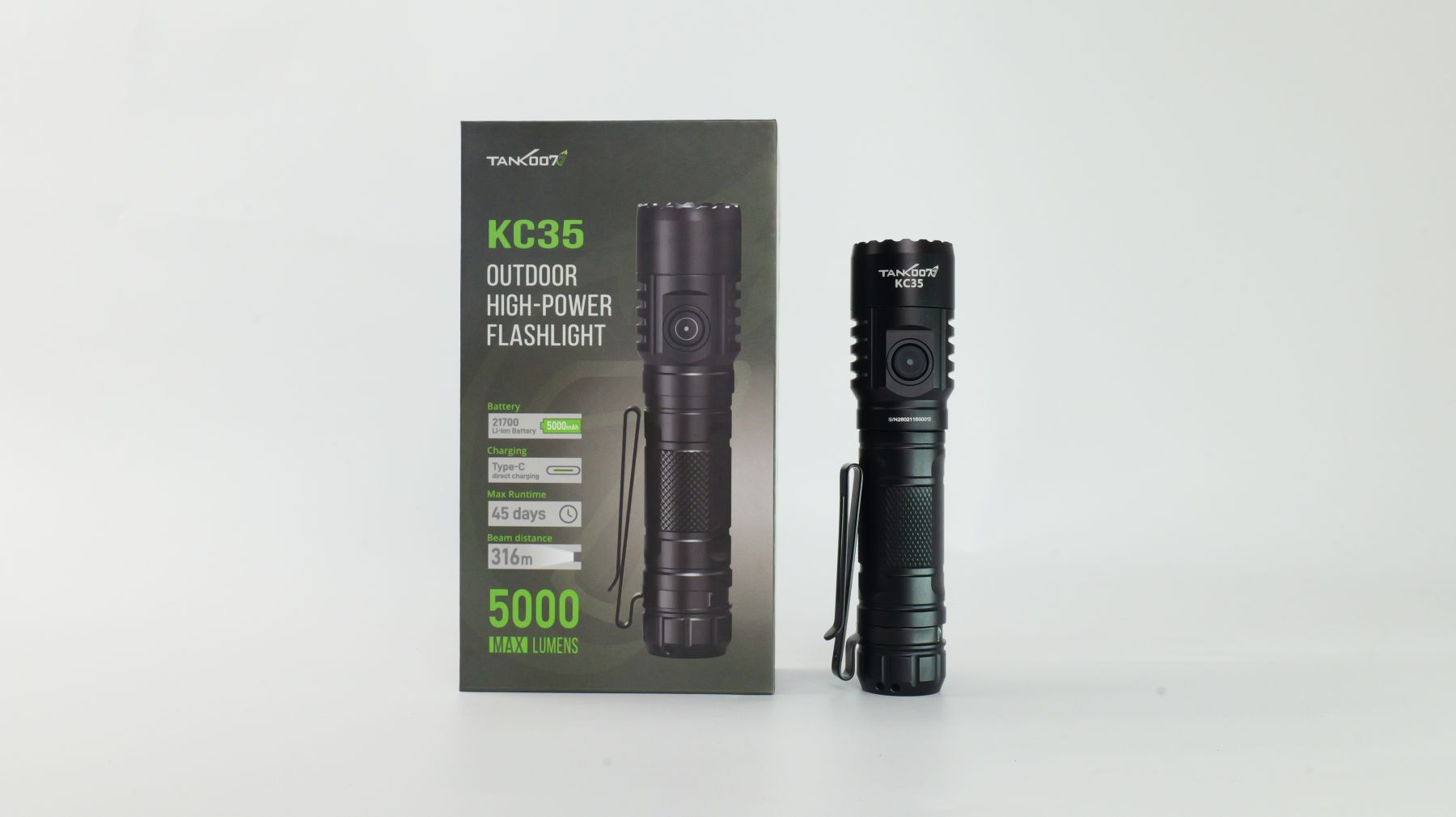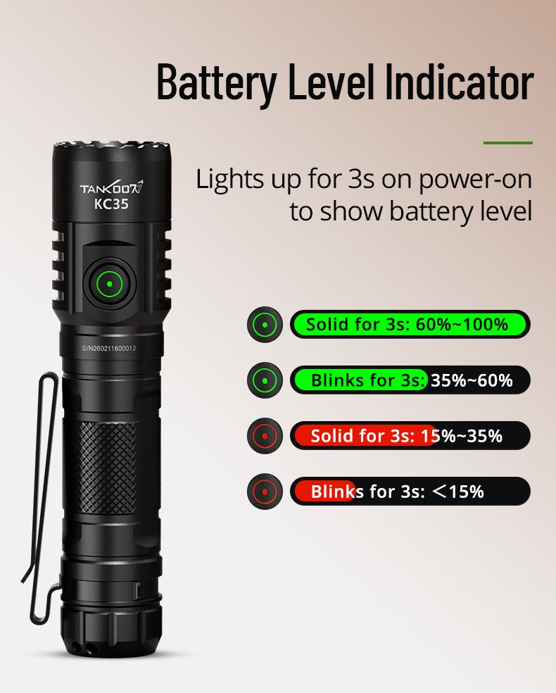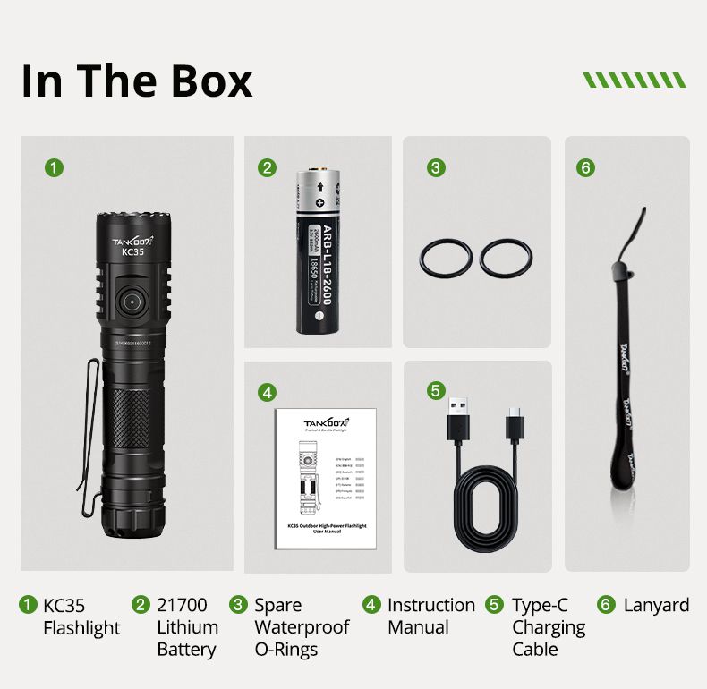 KC-35 - це потужний ліхтар, що може використовуватись як тактичний так і EDC. Він поєднує екстремальну яскравість у 5000 лм із компактними розмірами. Завдяки акумулятору 21700 він має чудову автономність, а стандарт IPX8 дозволяє використовувати його за будь-яких погодних умов. KC-35 може використовуватись як павербанк, що може допомогти в складних умовах.