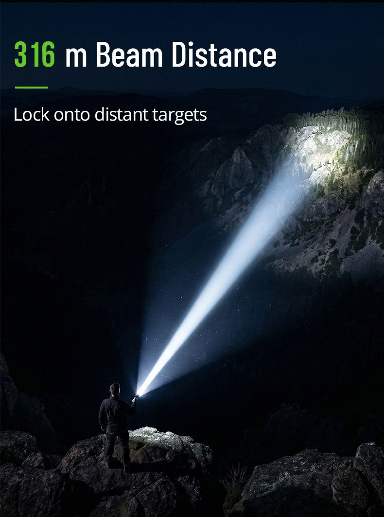 Fenix PD40R V3.0 має менше люмен (3000), але значно краще фокусування, що дозволяє «пробивати» темряву на 500 метрів.