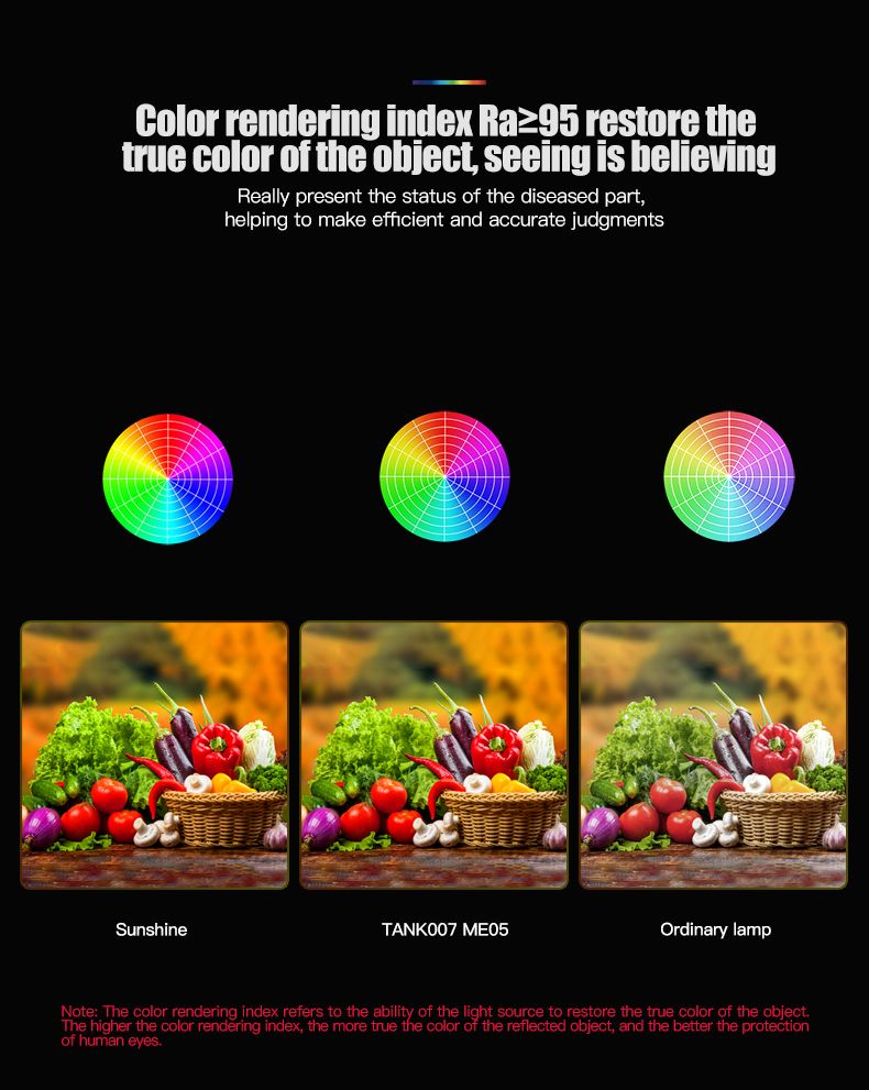 Висока передача кольору (CRI): Ra ≥ 95 дозволяє бачити об'єкти в їхньому справжньому кольорі, що критично для діагностики.