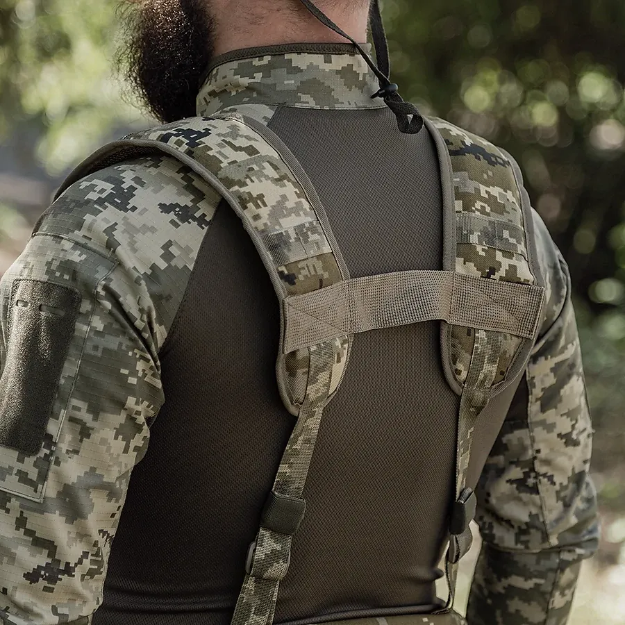 - Комплектується лямками із ремінної стропи 50 мм в кольорі олива, койот або чорний, мм-14 (колір лямок підбирається відповідно до кольору РПС та наявності матеріалу у виробника).